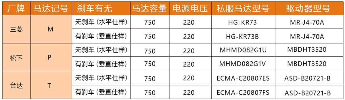 搭配伺服马达一览表