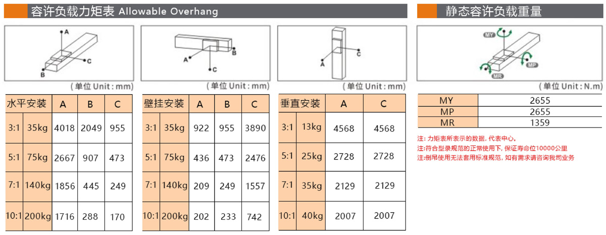 容许负载力距表